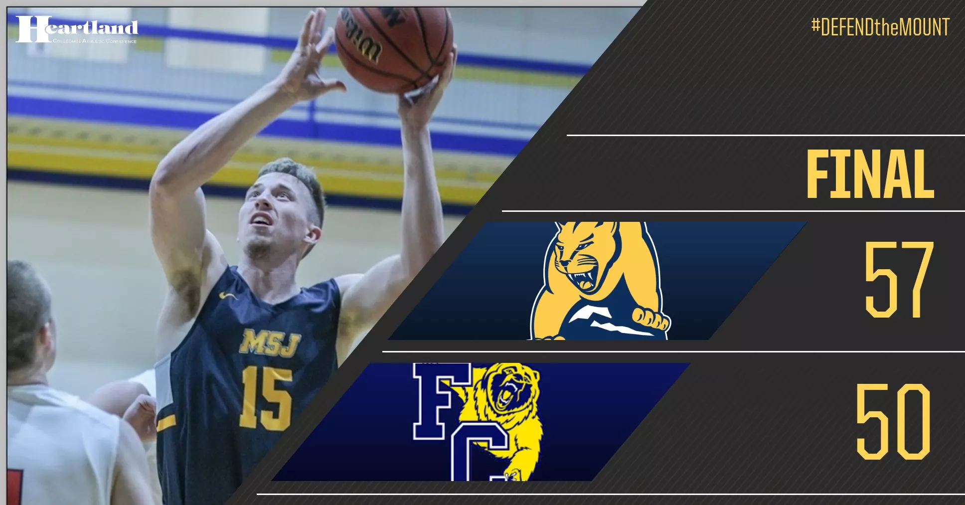 Box Score FRANKLIN, Ind. - The Mount St. Joseph University men's basketball team traveled to Franklin, Indiana to take on the Grizzlies of Franklin College in a Heartland Collegiate Athletic Conference matchup. After a hard-fought defensive battle the Lions headed back home to Cincinnati with a much needed conference win, taking the Grizzlies down 57-50.